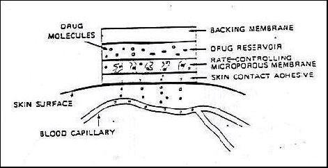 from which it diffuses through a polymeric membrane and the patient’s skin. To