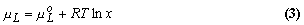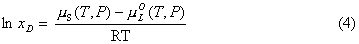 the chemical potential of the pure liquid drug. Combining (2) and (3) gives