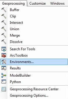 Before building and using raster data sets, we need to be specific about the grid cell size, coordinate system, extent, etc. ArcGIS will generally select useable defaults but, if we do not pay attention to the choices, we will discover later on that the grid cells for two different rasters have different sizes, do not line up, or have other problems. Let's begin by specifying a grid cell size of 100 meters and an