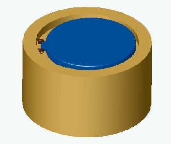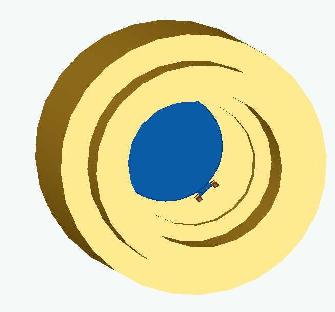 The top picture is from the outside looking in. The bottom picture is a cross section. The blue disc is the door that opens outward. That way the water pressure will keep it closed, and keep it from leaking. The little brown assembly is the hinge. Beyond the door, there is the docking sphere of the habitat. It is not shown, but there is a little release valve in the door and another release valve on the side of the wide part of the dock.