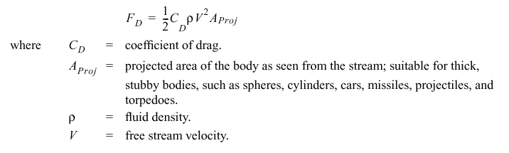 L is characteristic length of the body. For spheres, cylinders and discs, L is simply the diameter. The density and the viscosity (mu) will be constants in our case, and they are those the sea water through which the submersible will move. Let us consider how changing the shape will affect the drag if we are to move at a constant velocity (V). Now, Re and thus the drag coefficient depends solely on the shape. Let's look at the following table illustrating how the drag coefficient varies with shape:
