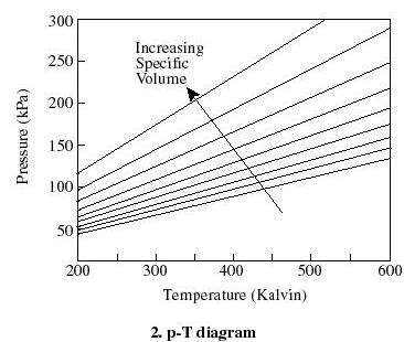 volume line (isochor) looks like on a T-p diagram, etc.