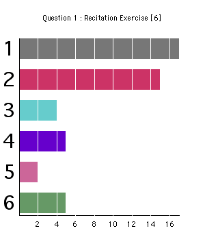 f) Based on Steve Hall's suggestion (and good experience with the technique) I used a new method of getting the students actively involved in the recitation sections. Instead of doing any lecturing, I brought in old exam questions and had them all break up into groups of 2-4 and work them at the board. In most cases we made it through 2-3 questions. The students felt this was valuable as shown below (thanks to Steve for the data).