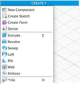 - Create a 3D solid body from the 2D profile using the tools in the CREATE panel. The most commonly used tools used are in the toolbar and additional tools are accessed through the CREATE dropdown panel.