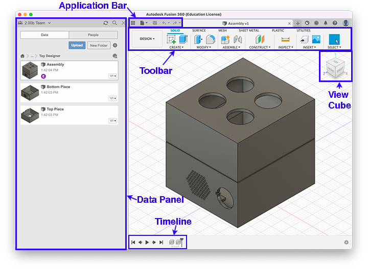 The Toolbar is where a lot of the functionality of Fusion 360