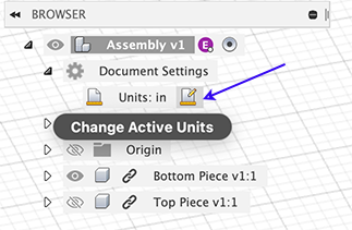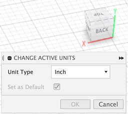 Units. To change the units (default is mm initially), hover the