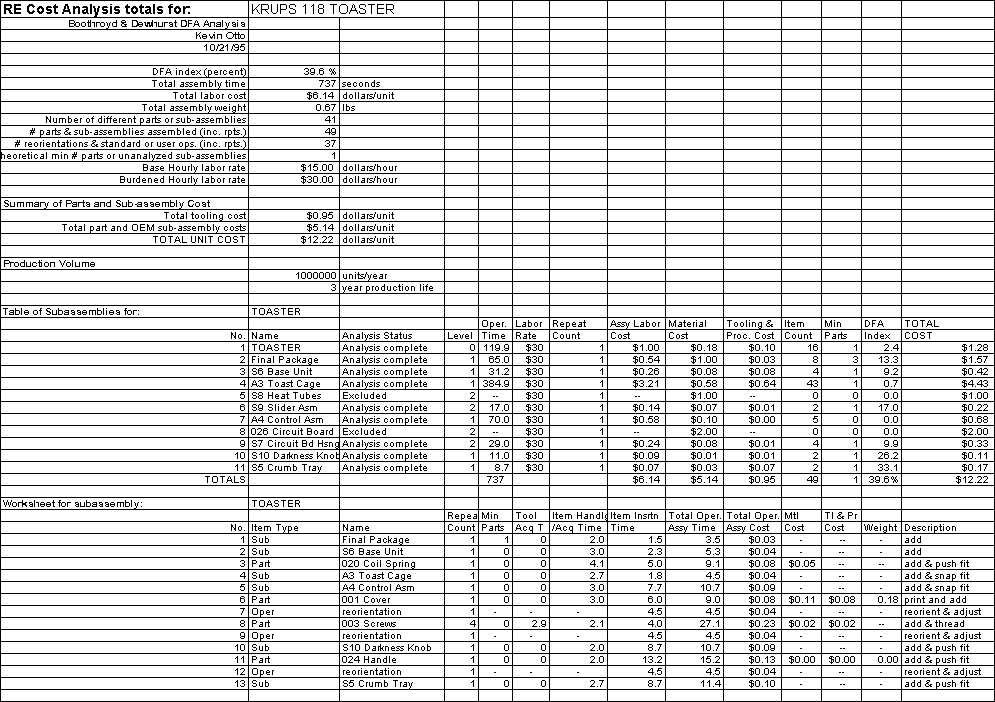 The product was cost-analyzed for assembly, material and manufacturing costs.