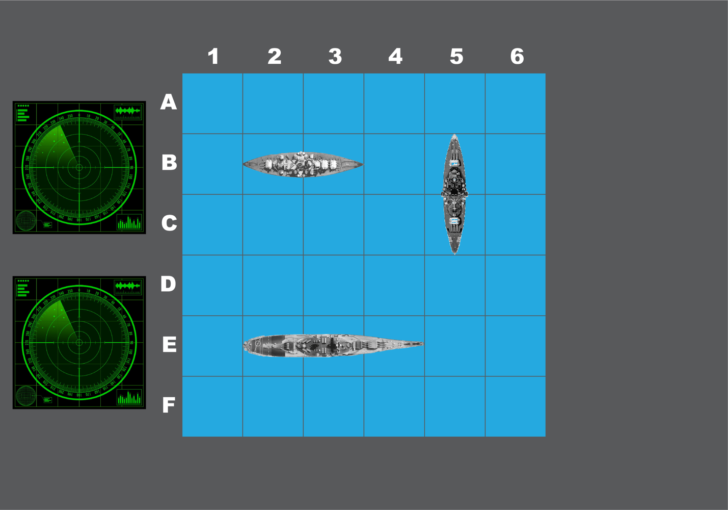 I wanted to make the design have the same structure as that of the board game while looking a bit more realistic. I used gray lines for the grid instead of black to give the users the illusion of being at sea. I also used realistic ships and radars. The grid is meant to have the same dimensions as the grid on the wall that the users have to shoot the balls over. The ball release mechanism will rest on top of the empty gray space to the right of the grid. Although the grid above is not meant to be the same size as the ball detection grid behind the wall (we wanted a bigger surface area for this part for better chances of beating the game), it is meant to give the users an idea of the spacing and structure of the game for better aiming.