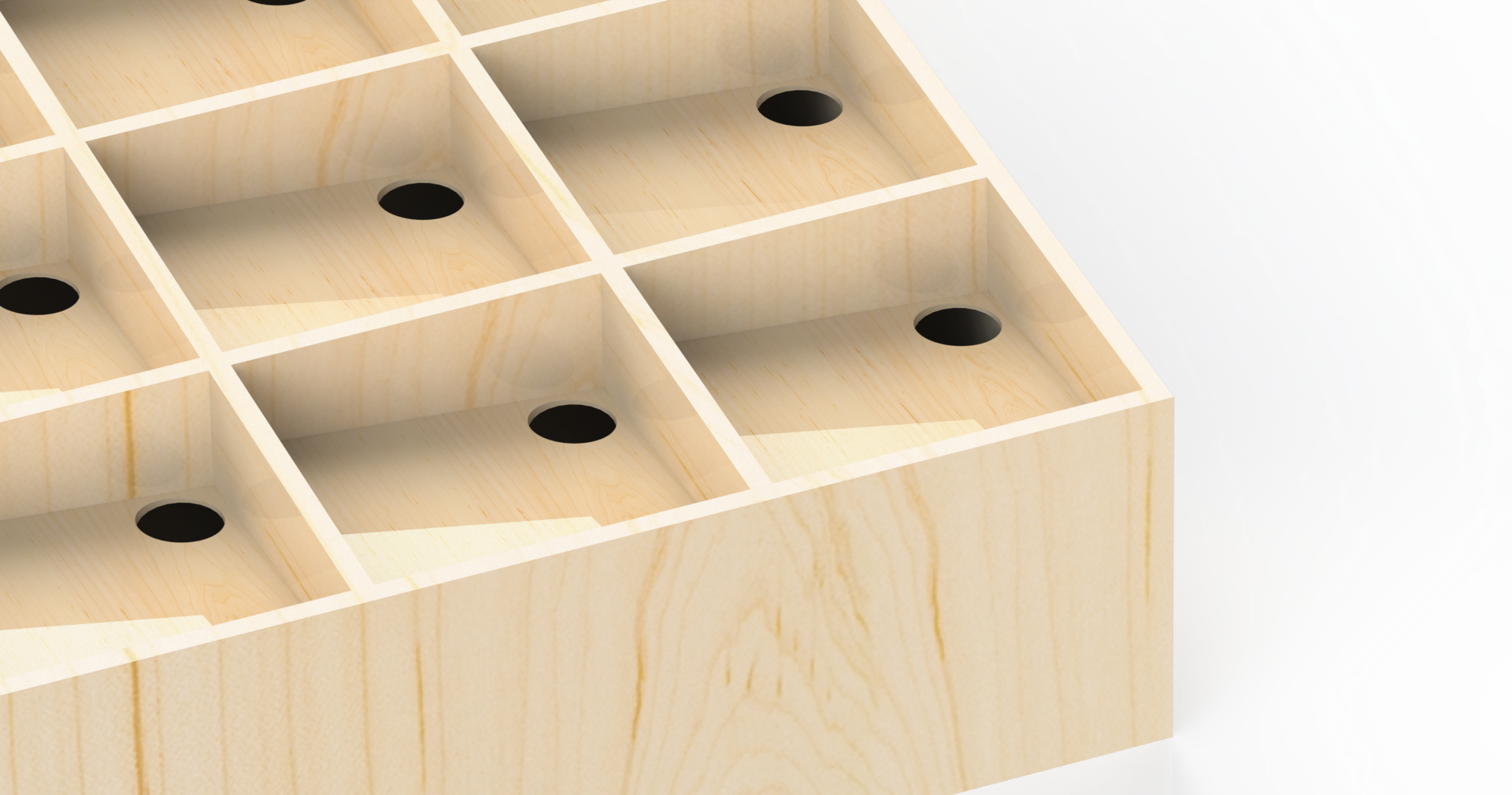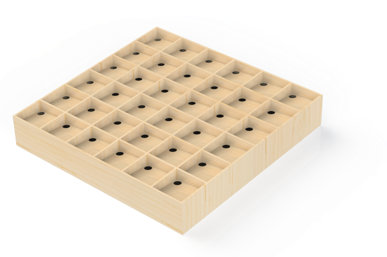 The entire apparatus is to be constructed out of wood for durability and structural integrity, with a damping material such as felt lined on the bottom of each square to reduce the coefficient of restitution of the balls.