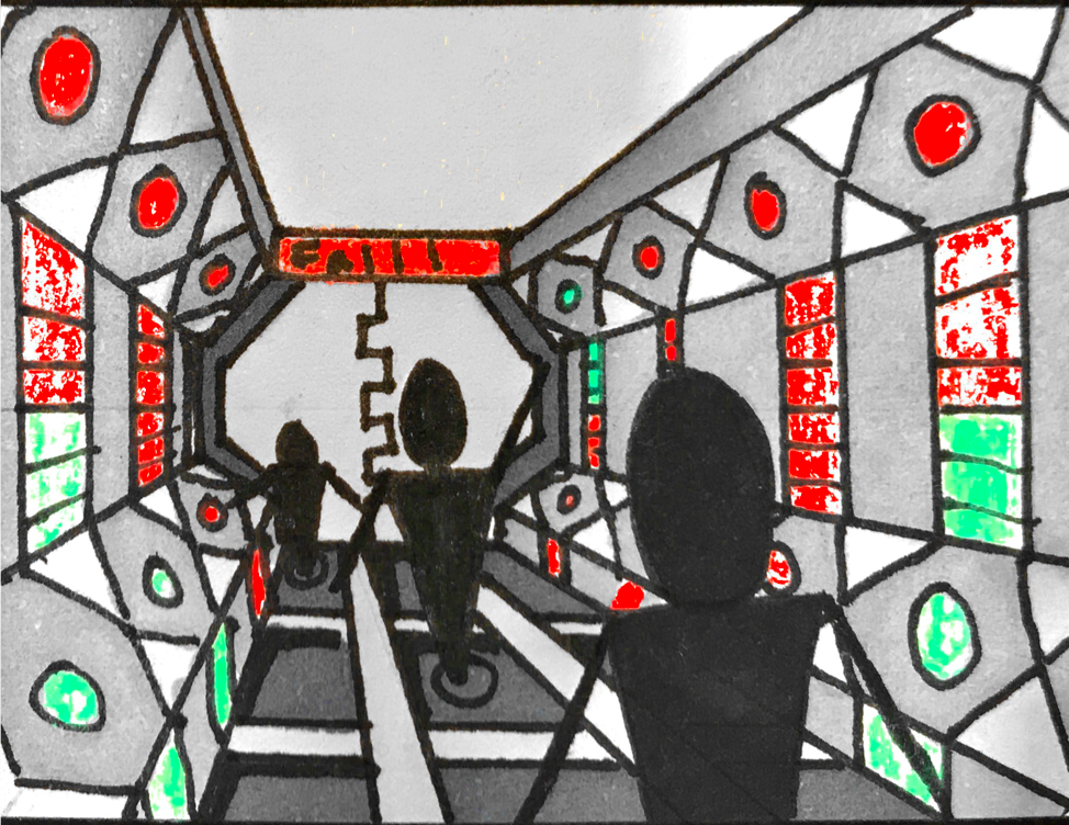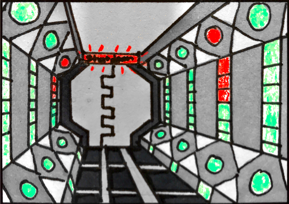 4. The players enter the room again and notice that some of the fuel cells are glowing red instead of green and are also popped out. They decide to push the popped out red ones back in. |