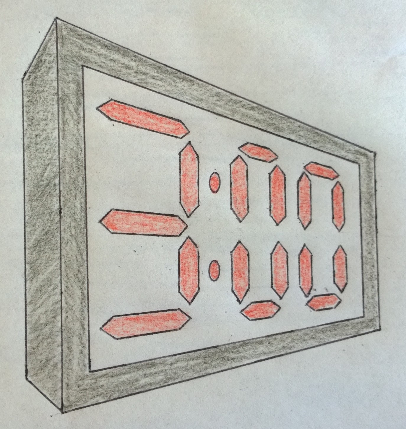 Concept sketch of the LED countdown timer is a 2-point perspective drawing that exhibits the countdown timer in the room which will help the players to keep track of their time left to guide the ball into the pit hole.