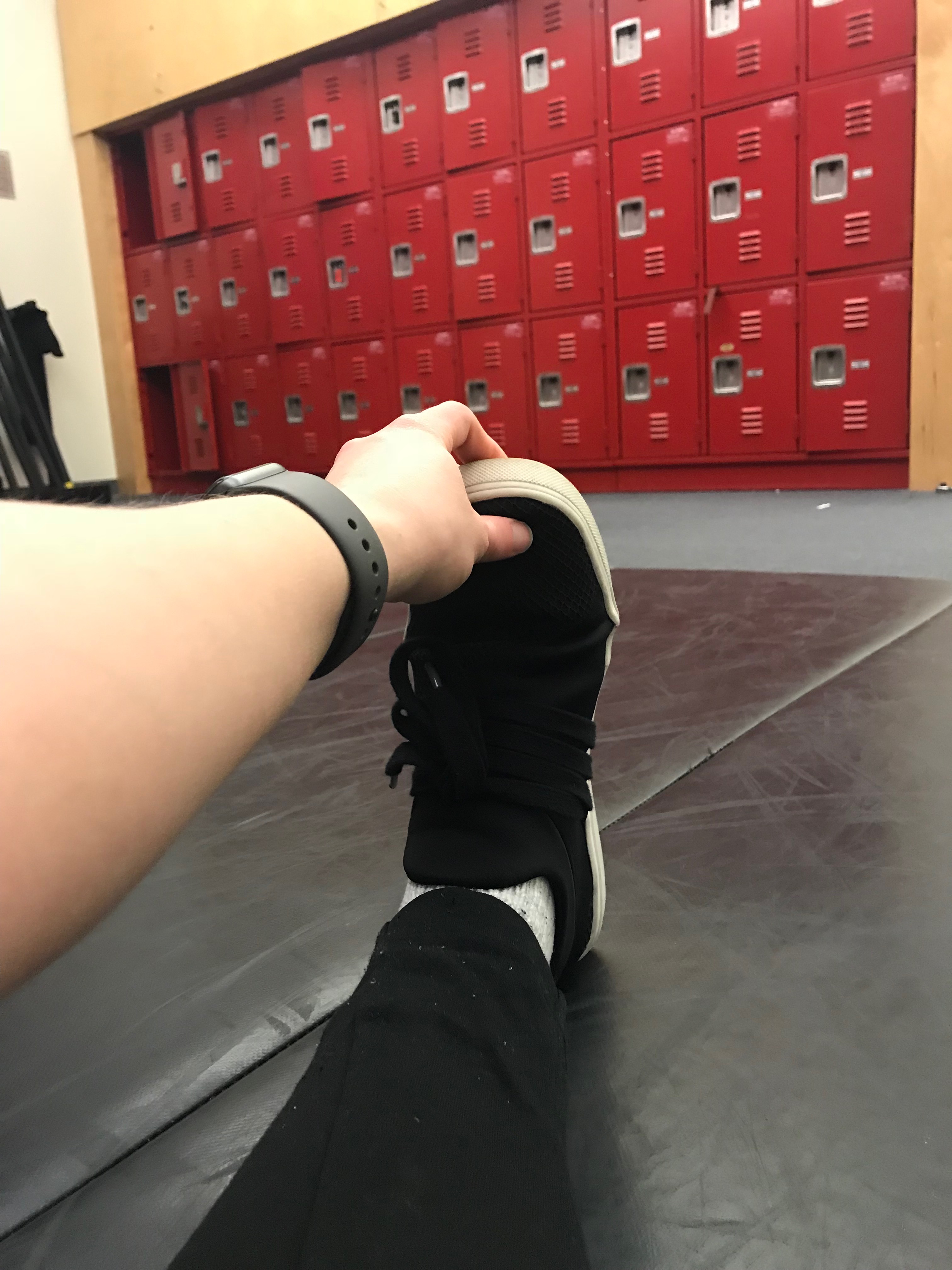I stretch on one of two mats. The mats are a decent size, but given that people always align themselves as efficiently as cars do on the streets of Boston- only about 4 people can fit on a mat that normally holds 6 or 7. Knock that down to about 3 people if two people are foam rolling as they take up more space.