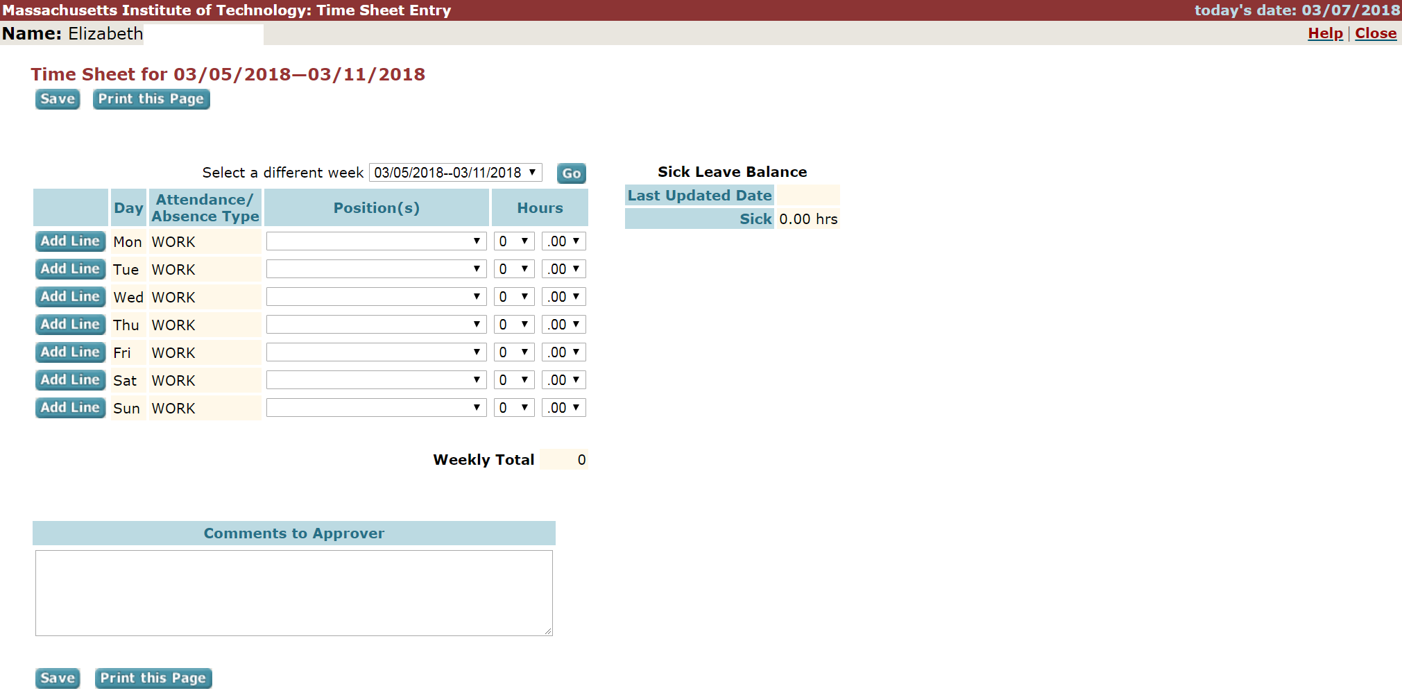 This website allows hourly MIT employees to enter time sheets, review time information, and submit their hours to their Approver. Hourly MIT employees must complete and have their timesheets approved in order to be paid.