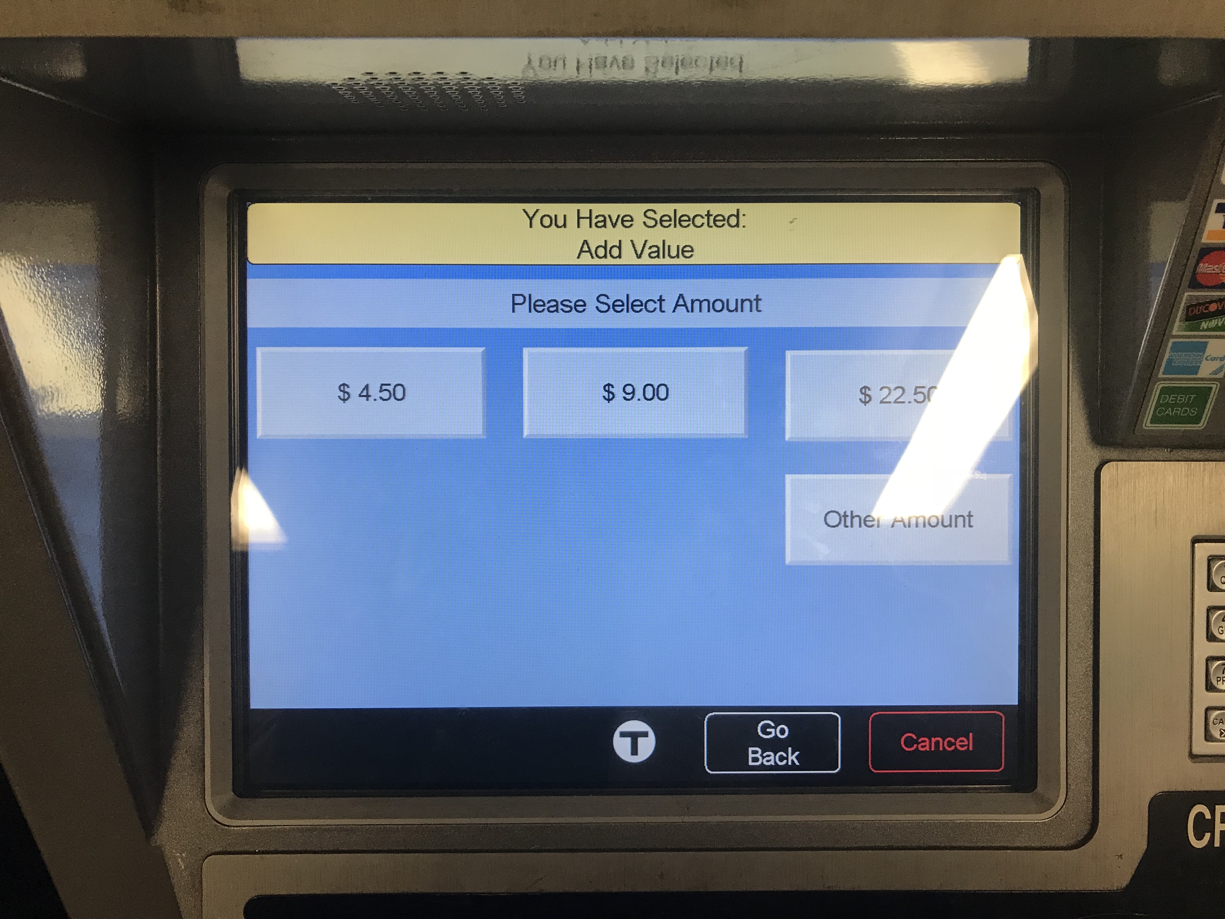 I decide to add value to my card. There are 3 preset options and one more option for other amount.