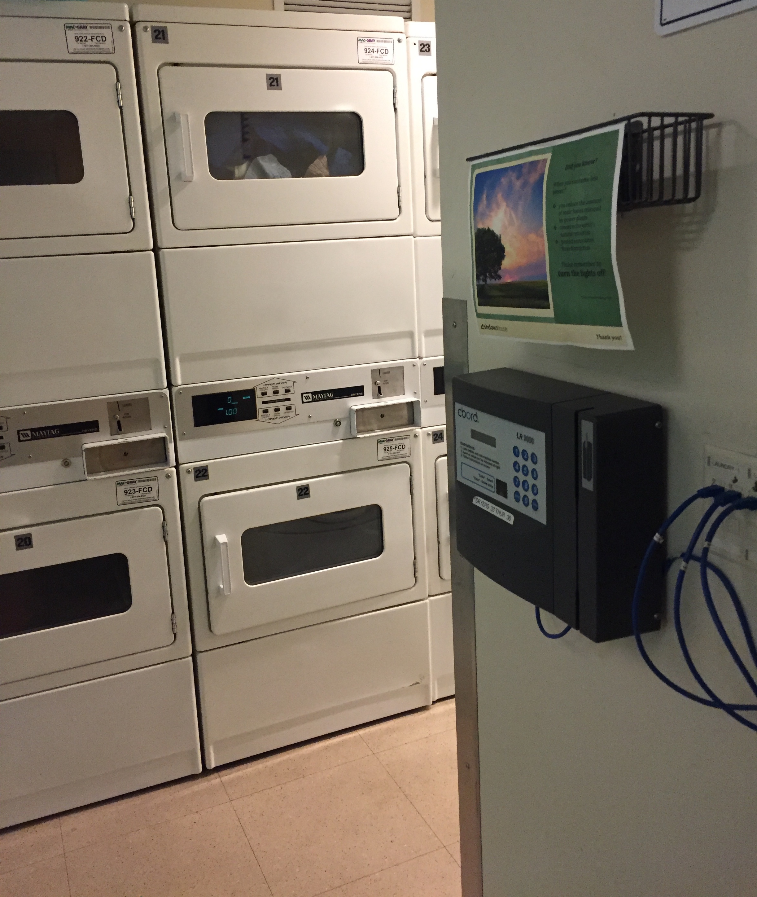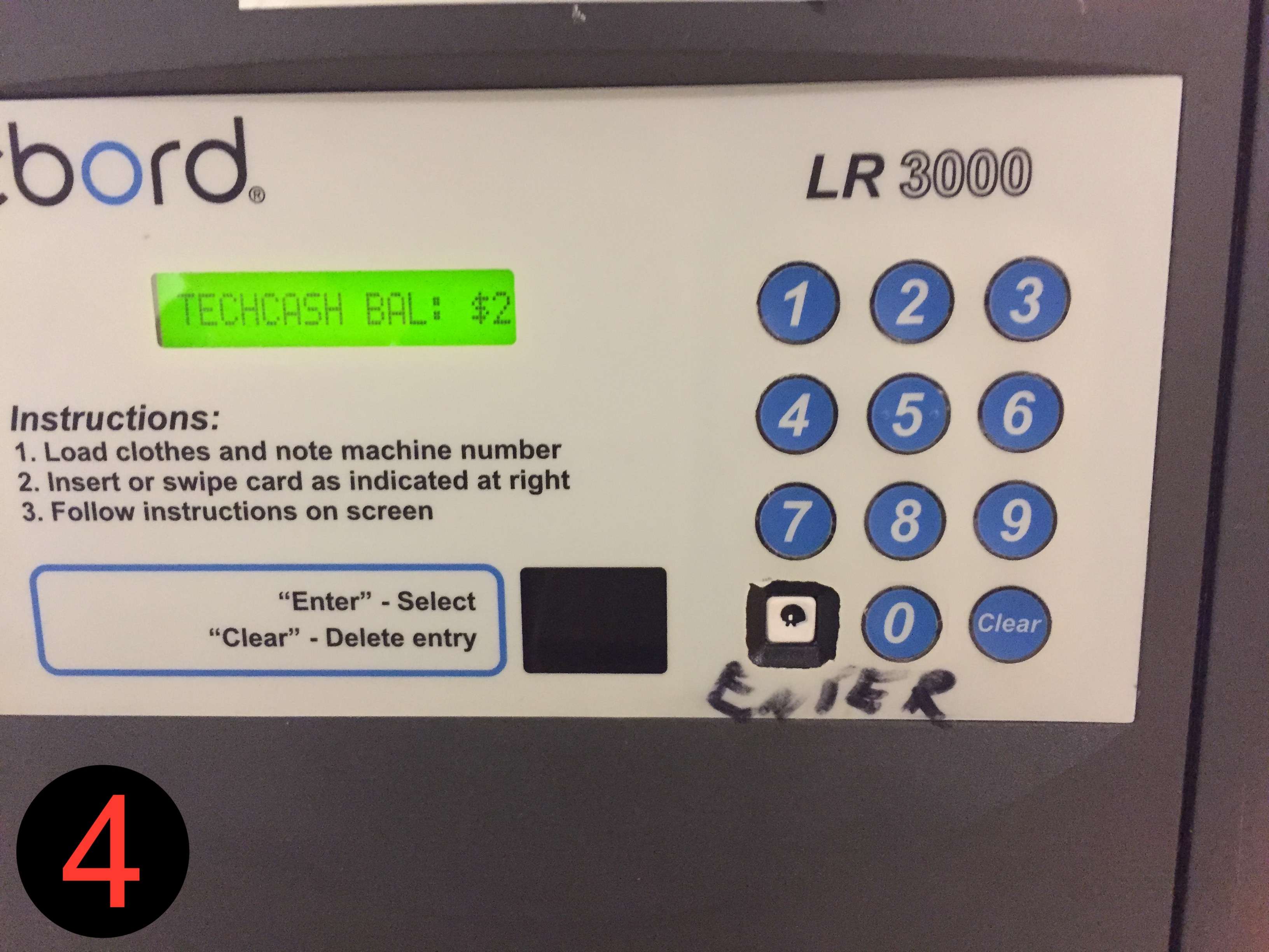 As with any trip to the laundry, the user starts off by looking for an available machine to load their batch of clothes. This task is typically simple and straight-forward since it can be quickly validated by visual inspection of the machine. Once the clothes are loaded in the machine, the user can either insert coins directly to the machine or utilize the Tech-Cash system in the entrance of the laundry room to pay for the machine-use. Since each machine has a unique number assigned to it, the user can pay for any machine available through this integrated Tech-Cash system.