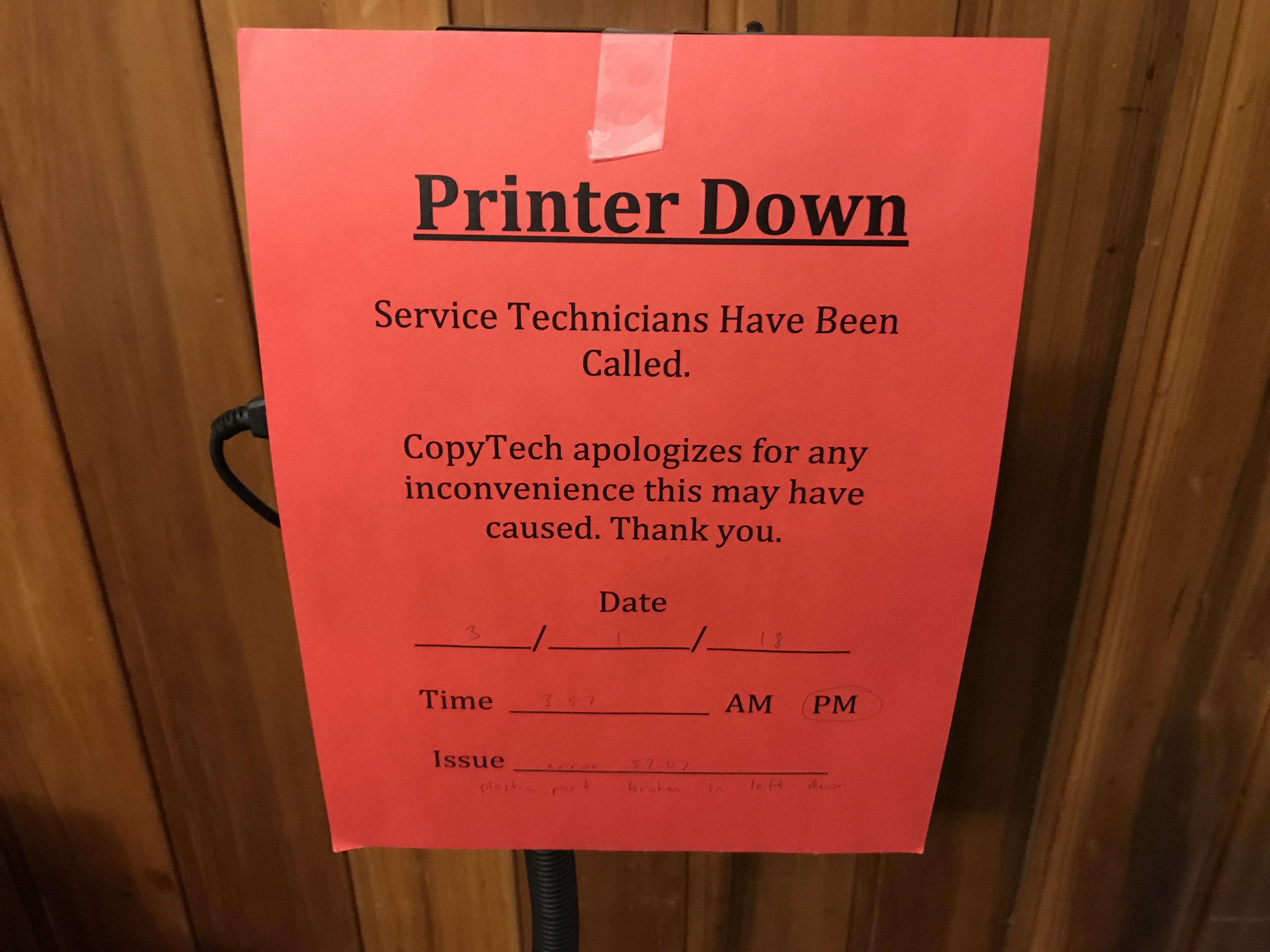 "It's annoying when the network is down and the printer isn't. So you know the printer could print but you can't."
