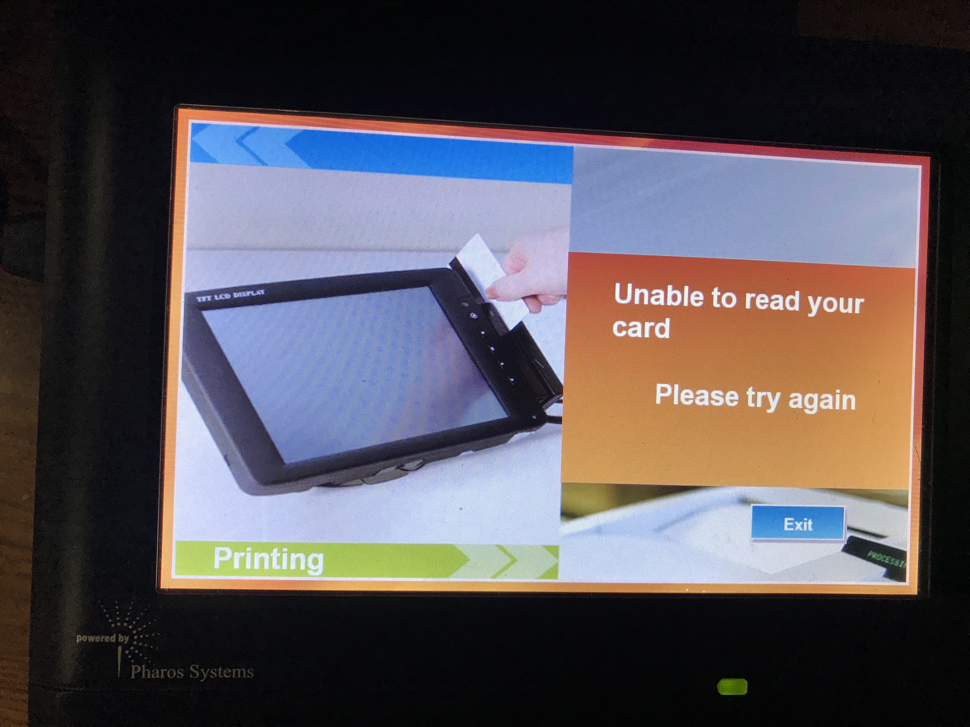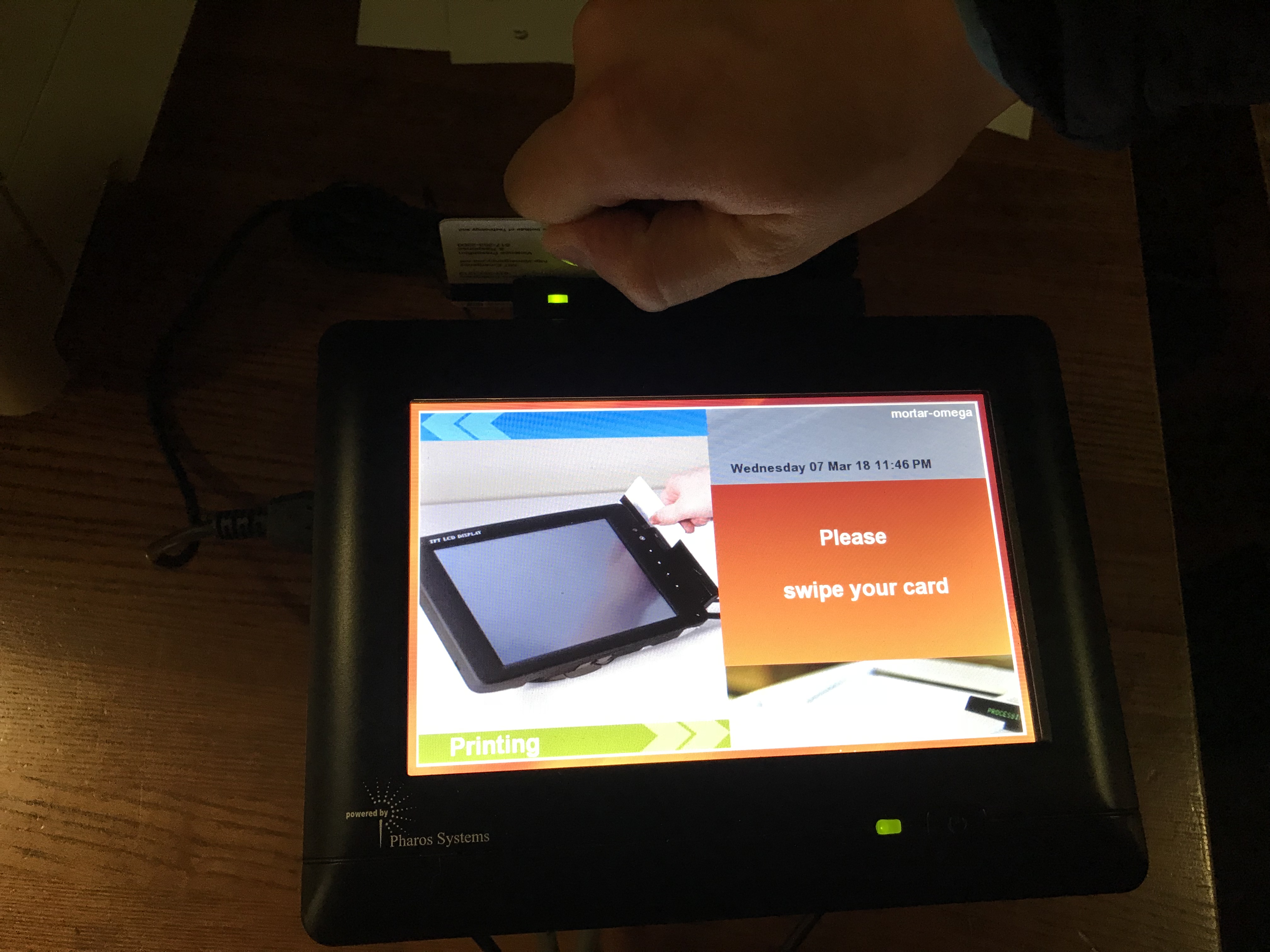 Instead of having a card reader, having a card tapper allows users to easily tap their card. This is quicker and more reliable. Also, on the screen, would be an option to enter an ID number in the case the user forgot their ID, or are printing for I friend using their ID.