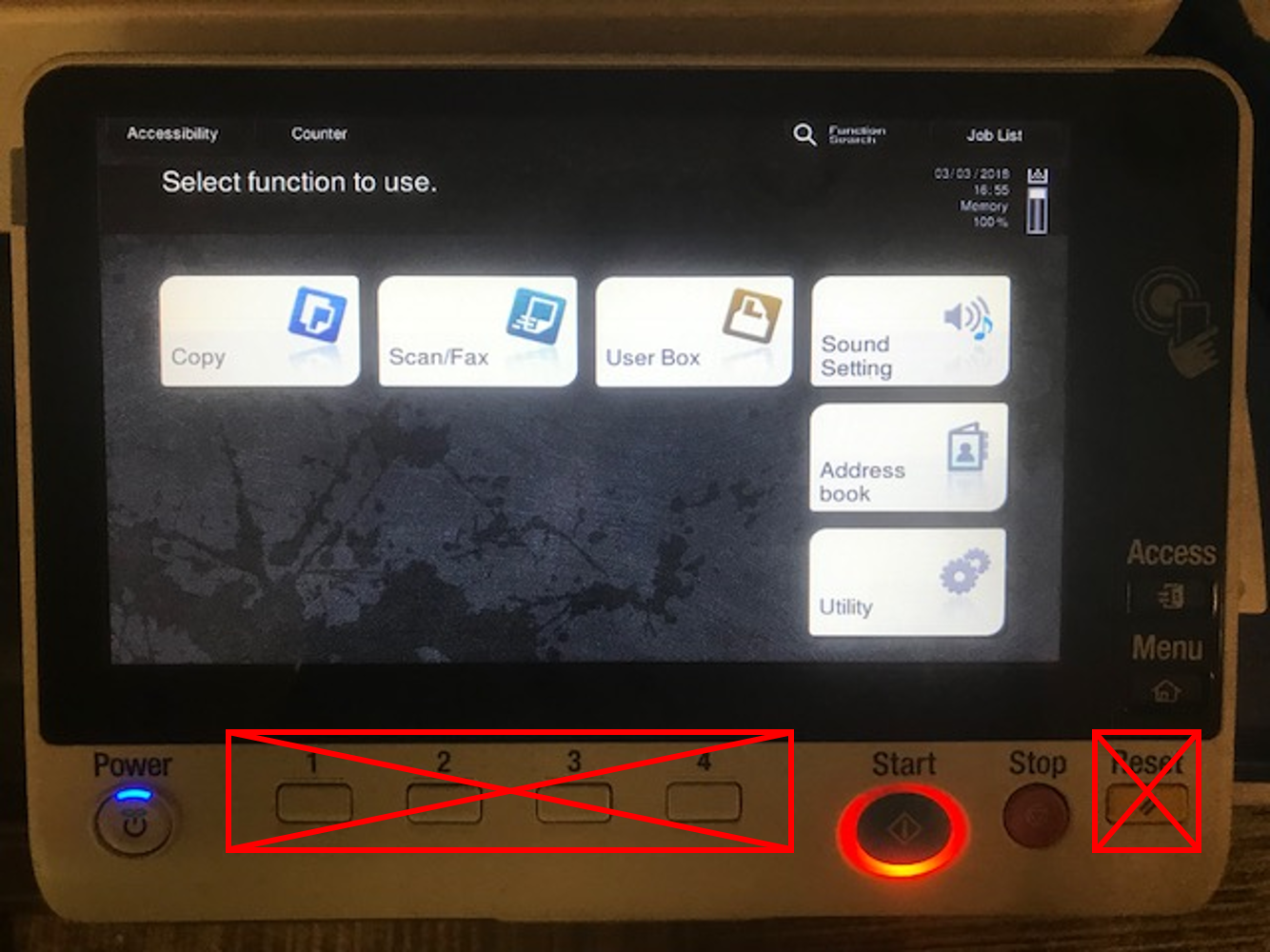 - There should be an option for the Admin to set the input controls to a 'simple' configuration. In more than 95% of use cases, the lay user will not have to use alternate paper sizes, adjust brightness or intensity, create offsets, etc. All of these input complicate the primary tasks of the multifuction machine.