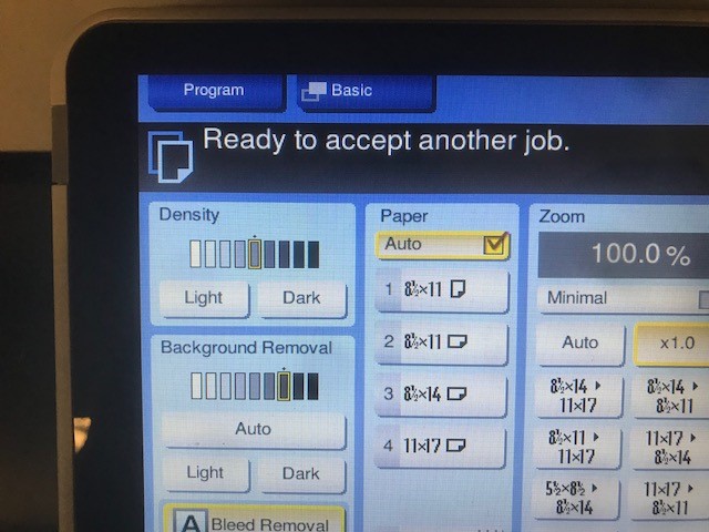 6. After the copy is complete, the control screen prompts the user that it is ready to run a new job.