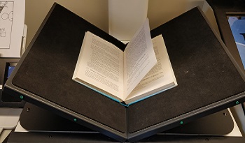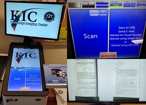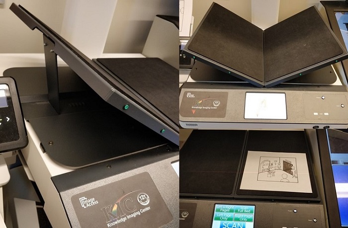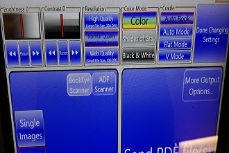 Brightness, contrast, resolution and color settings can be adjusted before scanning and can be changed post-scanning from the modify menu. The KIC scanners' main use is for students scanning textbooks or other journals in similar configurations, however if an object requires a flat plane you can adjust the settings to scan the entire bed in one sweep instead of splitting the left and right sides like it does in default.
