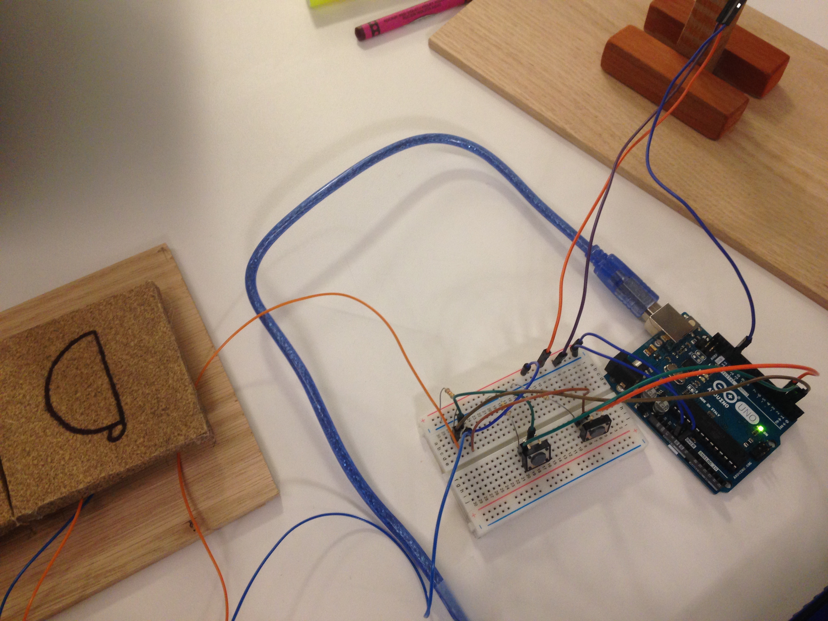 I wanted to test how noticeable each incremental rotation would be. If players touch the correct hieroglyphs but don’t see noticeable progress, then they may not associate the correct action with the positive result. Though if this were the case, perhaps a happy sound could play to further emphasize the feedback. I also wanted to test how feasible it would be to write the code, as I have a MechE background and haven’t touched Arduino for a few years.