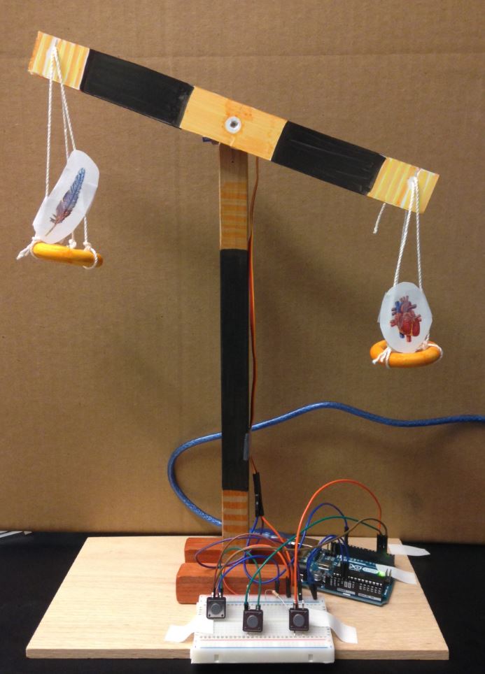 The purpose of the scale gag is to act as a progress bar. Upon entering the room, players see an unbalanced scale (with the heart on one plate weighing more than the feather on the other plate). As players carry out the appropriate actions, they will see that the heart is becoming lighter in weight. The game is won once the heart weighs less than the feather (as in Ancient Egypt this signified the heart of a pure, sin-less soul).