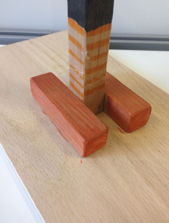 Initially I was going to use all foam core for the entire balance, but then realized that it might not be strong enough to support the stepper motor’s weight. So I changed the frame material to wood. I was surprised by how easy it was to saw into pieces. I was going to use wood screws to hold the wooden frame together, but then I ended up using the hot glue gun as it was safer, given I was building this with an injured finger.