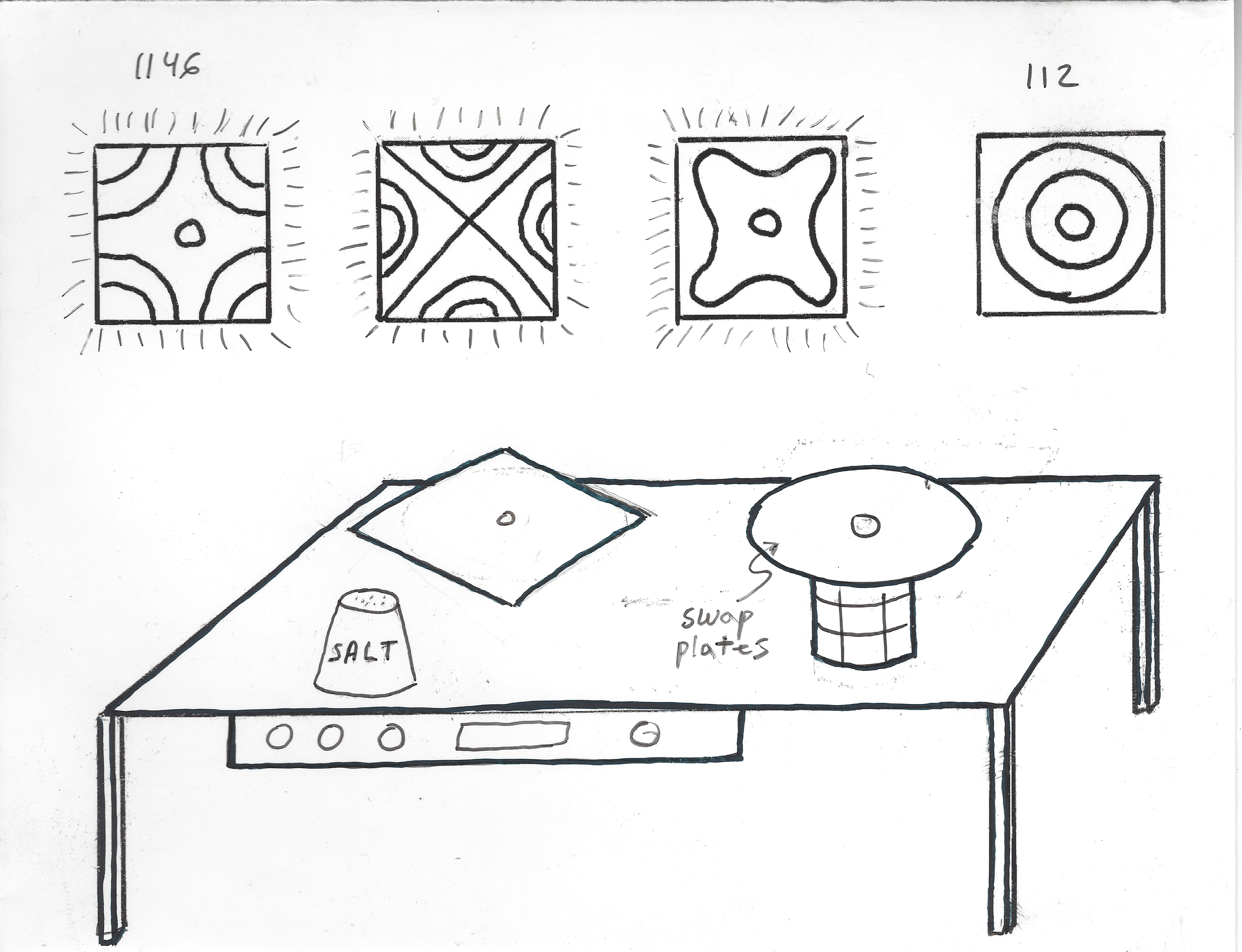 But when it comes to the last one, there seems to be a problem. The image label tells you "112", but when you set the frequency to 112Hz, you don't get that pattern or any pattern at all. After consulting with your friends, you realize that there is circular symmetry in the image, and a rectangular plate is not going to give you those circles. Fortunately, one member of your group notices that there is a circular plate on the table. You swap the two plates.