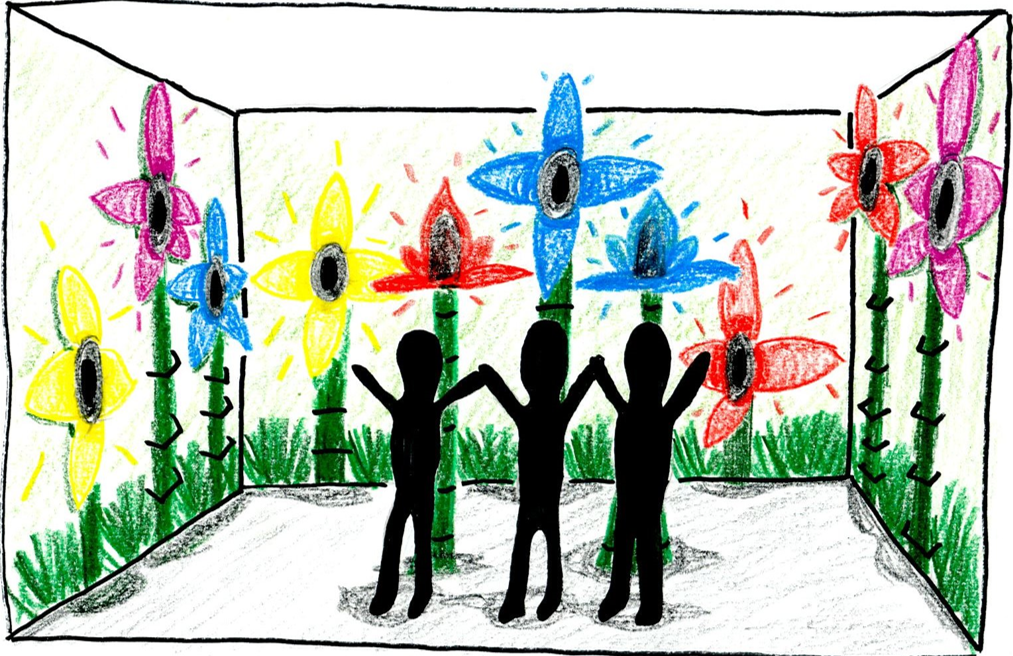 The hurried "Flight of the Bumblebees" turns to congratulatory music and the flowers all flash in unison to let the guests know they have won.