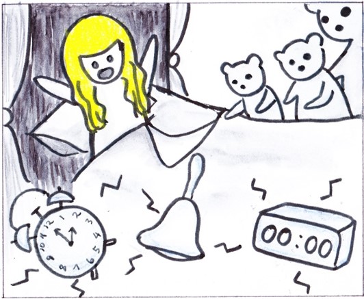 A loud ringing fills the room, and Goldilocks wakes up with a fright!