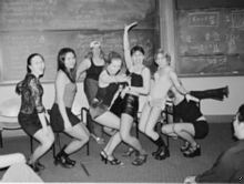 Two Chorallaries fans give Dan a backrub before the show. |