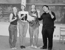 Emily, Leah, Dan, and Sebastian as the Harvard admissions committee. |