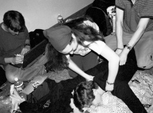 Dan tickles Lisa to within an inch of her life. |