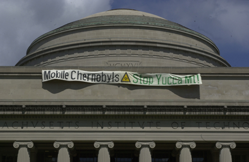 and other issues...In an opinion column in The Tech, Brice Smith argued that transporting nuclear waste to its proposed storage site in Yucca Mountain would create "mobile Chernobyls." The column and banner appeared on the 16th anniversary of the Chernobyl disaster. |