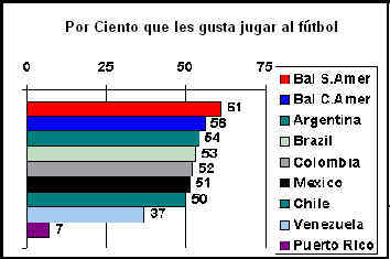 Según una estudia (completada en español pero presentado en la Red en ingles) que era completada en Argentina, Brasil, México, Colombia, Chile, Venezuela, y Puerto Rico, más de 53 por ciento de los niños entre los edades de siete y once juegan al fútbol y les gusta jugar al fútbol. Las tabla al derecho muestran las resultadas de la estudia. La