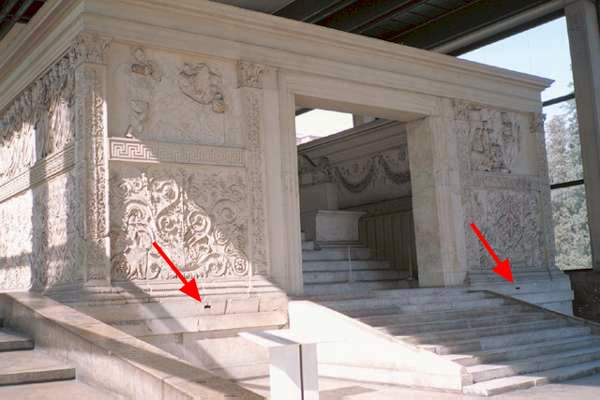 Also notice the small notches, designed to allow blood to flow out of the Altar and facilitate cleaning. Although the altar was designed to further the ideals that Augustus wished to disseminate, it was designed and used as a functioning altar.