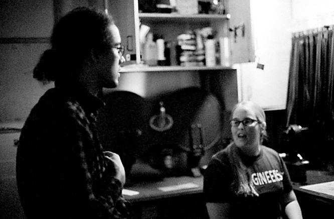 It doesn't seem to be very long before the credits start to roll, and someone turns on the side lights so that moviegoers can find their way out into the halls. There is a bit of a rush when the movie ends, but then some peace. The projectionists put on some music, maybe some classical, or maybe some disco classics. At the end of the night, LSC members clean up the house, rewind the reels, roll up the screen, and drag the popcorn and soda machines down to their lonely home in the basement of Building 56.