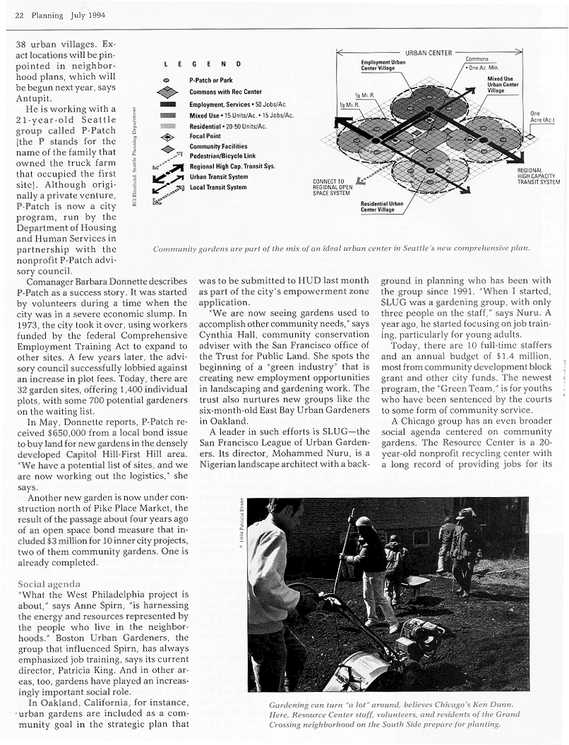- Knack, Ruth. "Dig These Gardens" Planning 60:7 (July 1994): 20-24.