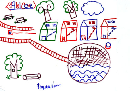 On the right there are two students as obstacles to push you back to start. On the left you have to get around four more students, a bus, and a table to get to the hole.
