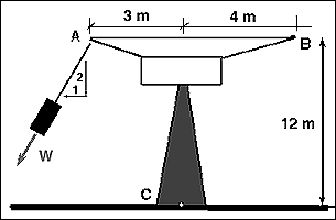 Given a mass (Force W = 200 KN) is supported by one cable on the indicated