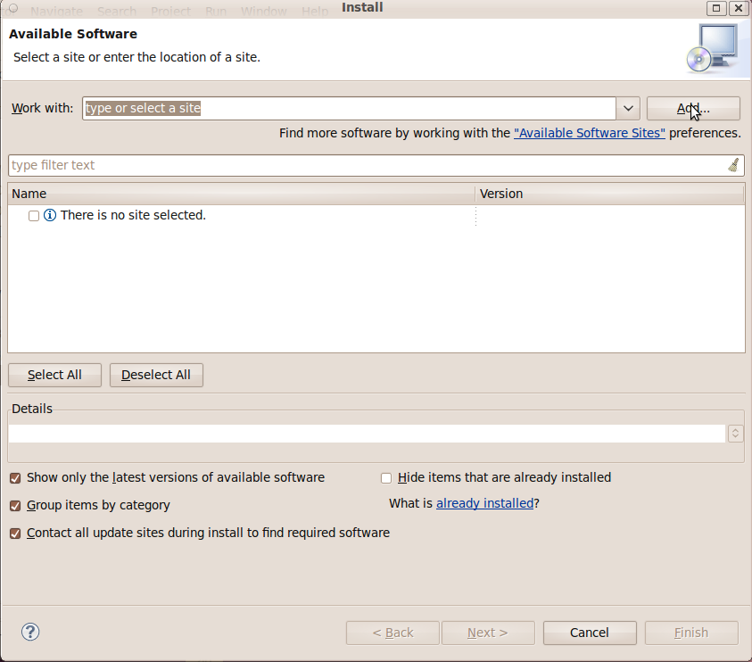 Start the installation process by going to Help->Install New Software