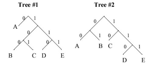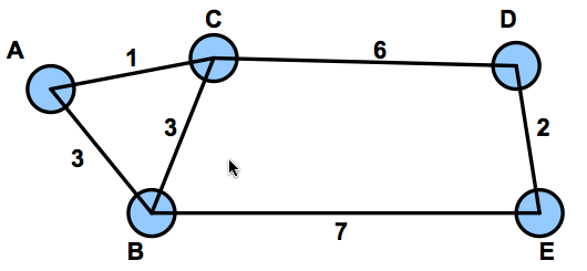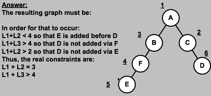 with 3 nodes A, B, D, and equal cost on all the links. The second