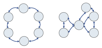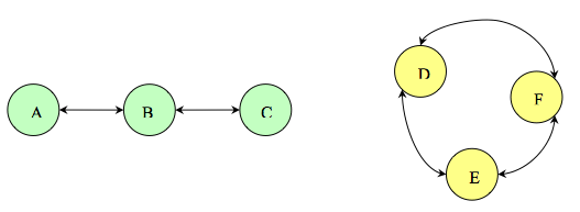 Consider the following networks: network I (containing nodes A, B, C) and network II
