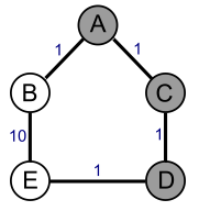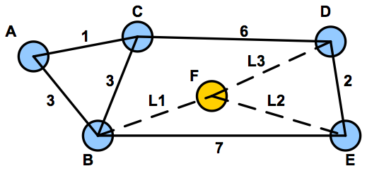 Now assume the link B-C fails at t = 51 and link D-E fails