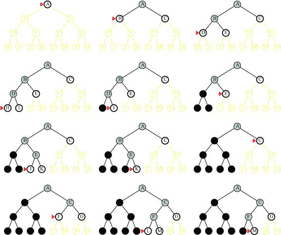 Depth-first expansion of search tree with a branching factor of 2