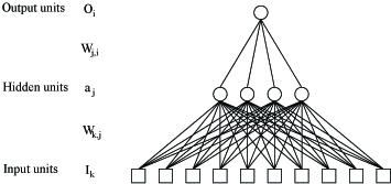 assigns a portion of the responsibility to node j. The proportion is determined by the weight from j to all output nodes. Now we can give the weight update rule for links from input to hidden nodes.