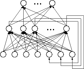 Next: Neural Network Issues Previous: Examples Networks That Deal With TimeIn the feedforward networks we have been studying, transfer functions capture the network state (not usually spatiotemporal in nature). Recurrent neural networks feed signal back from output to network (output to hidden, hidden to hidden, hidden to input, others). In this way they can learn a function of time. y(t) = w1 x1(t) + w2 x2(t) + ... + wn+1 x1(t-1) + wn+1 x2(t-1) + ...