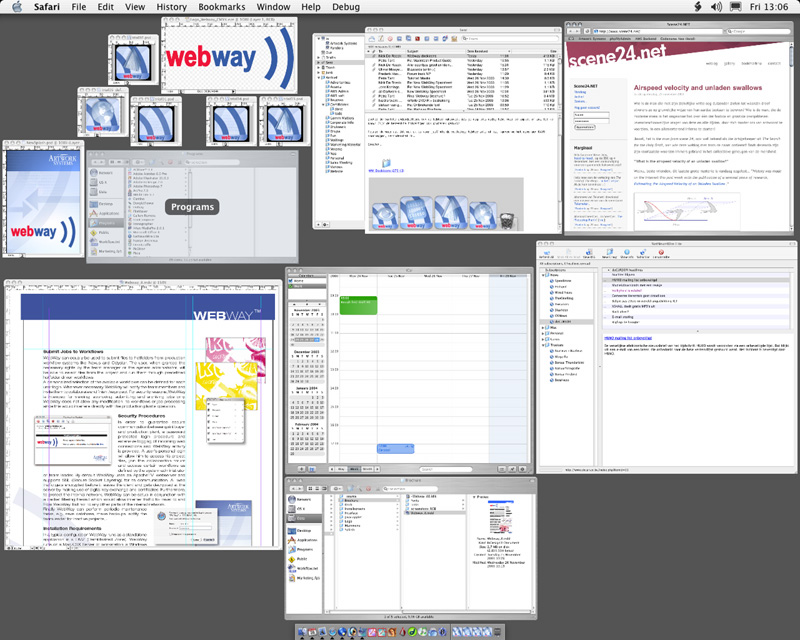 F3 on a Mac, it displays all the open windows--even hidden windows, or windows covered by other windows--shrinking them as necessary so that they don't overlap. Mousing over a window displays its title, and clicking on a window brings that window to the front and ends the Exposé mode, sending all the other windows back to their old sizes and locations.