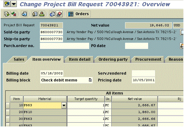 Add line (assigning WBS from ZPSR002C, 2733875 in this