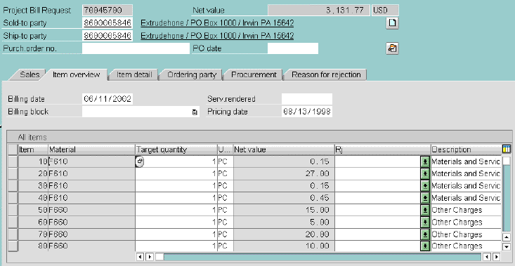 Note: This transaction is the only way to modify a billing request after the billing block has been removed. For billing requests that are blocked, you should use V.23.
